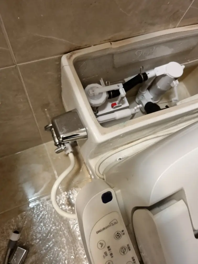 현장에 도착해서 변기 탱크 뚜껑을 열어보니 역시 물이 계속 흘러내리고 있었습니다. 급수 밸브와 플러시 밸브를 확인한 결과 여러 부품이 노후화되어 제 기능을 못 하는 상태였습니다. 부분 수리보다는 주요 부품을 전체 교체하는 것이 좋겠다고 판단했습니다.